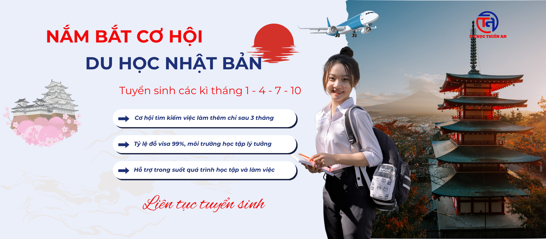 Trong suốt hơn 13 năm qua, Thiên An đã đồng hành cùng hàng nghìn các bạn DHS, các bạn XKLĐ, kết hối với hàng trăm đơn vị, trường học,… tạo bệ phóng vững chắc cho mỗi học viên khi đã lựa chọn và tin tưởng Thiên An.